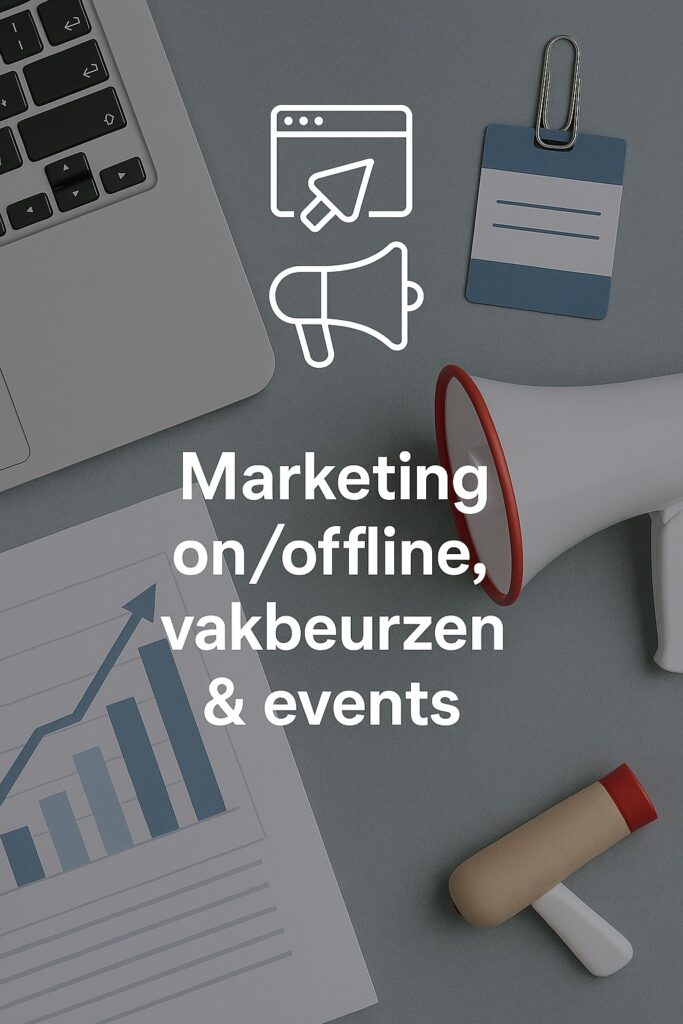 Ik help je bij al je marketing activiteiten en vraagstukken, van strategie en marketingplan tot uitvoering, zowel online als offline. Daarnaast organiseer ik je deelname aan lokale vakbeurzen en events van A tot Z, inclusief standinrichting en standbemanning, zodat alles professioneel en succesvol verloopt.
